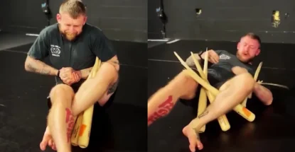 U videu BJJ majstor veže tri bejzbolske palice u snop kako bi simulirao ljudsku potkoljenicu i stopalo, zatim na taj improvizirani “ud” primjenjuje zahvat. Poenta demonstracije je pokazati da uz
