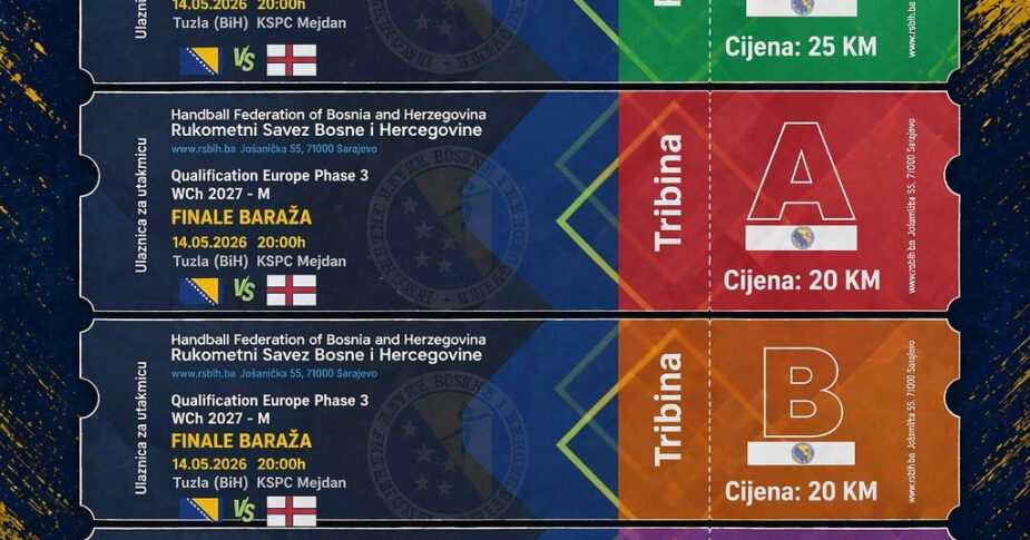 Također, objavljeno je da cijena ulaznice za tribine iznosi 20 KM, a 25 KM za parter.